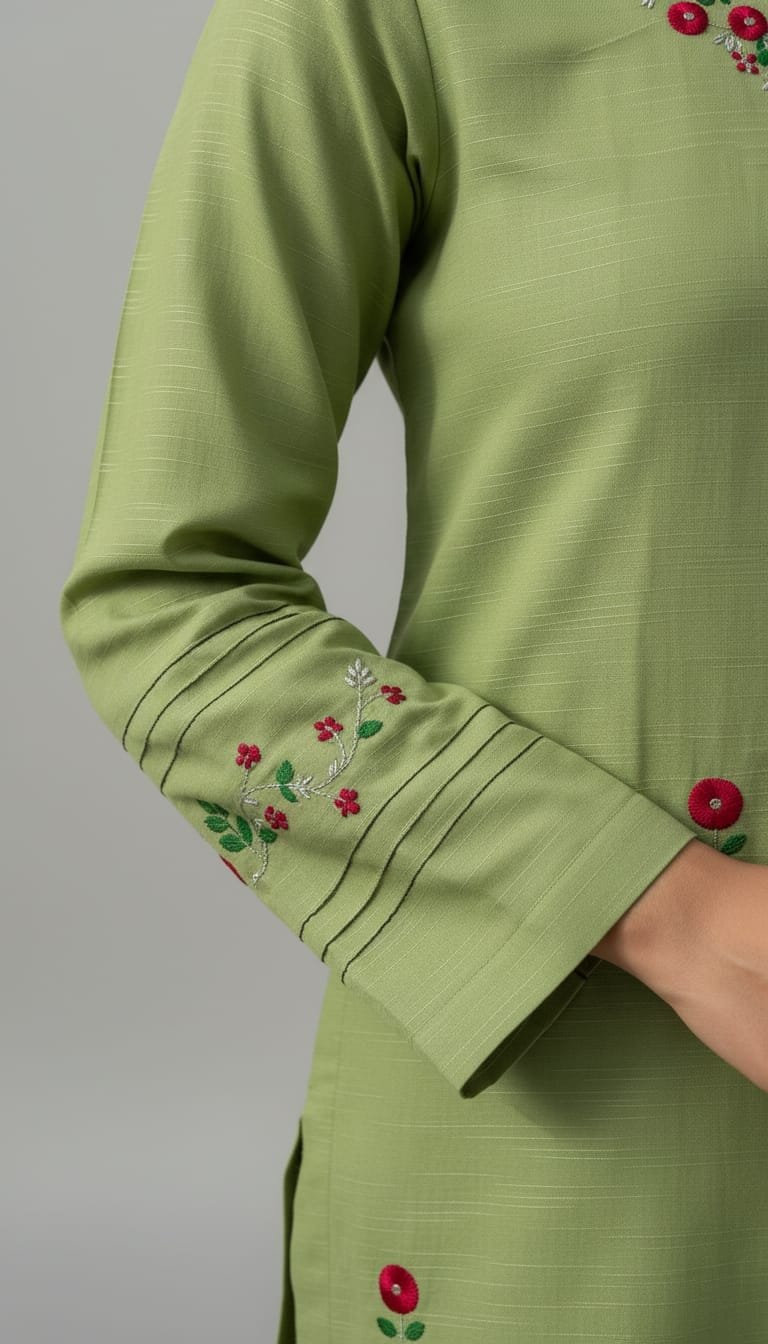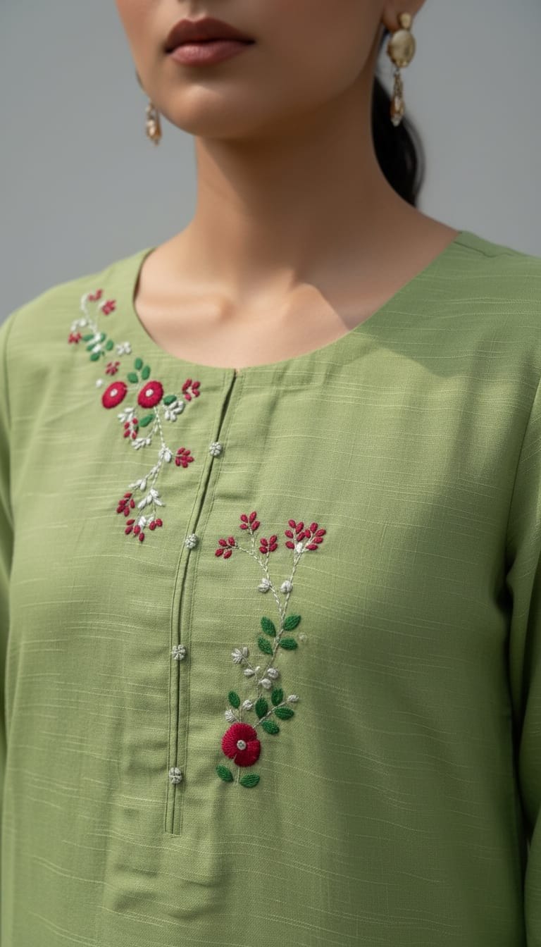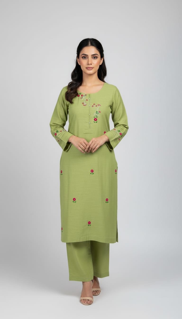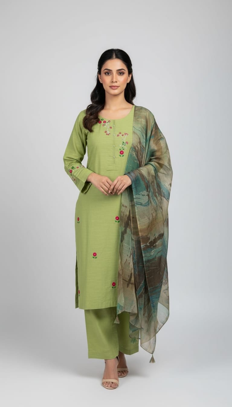 Embrace the beauty of tradition with Kashish-e-Sabz, a stunning addition to Irunza’s Artisan Collection. This soothing sage green ensemble features intricate hand-embroidered floral motifs, delicately crafted by skilled artisans to give you a premium look at an amazing price.